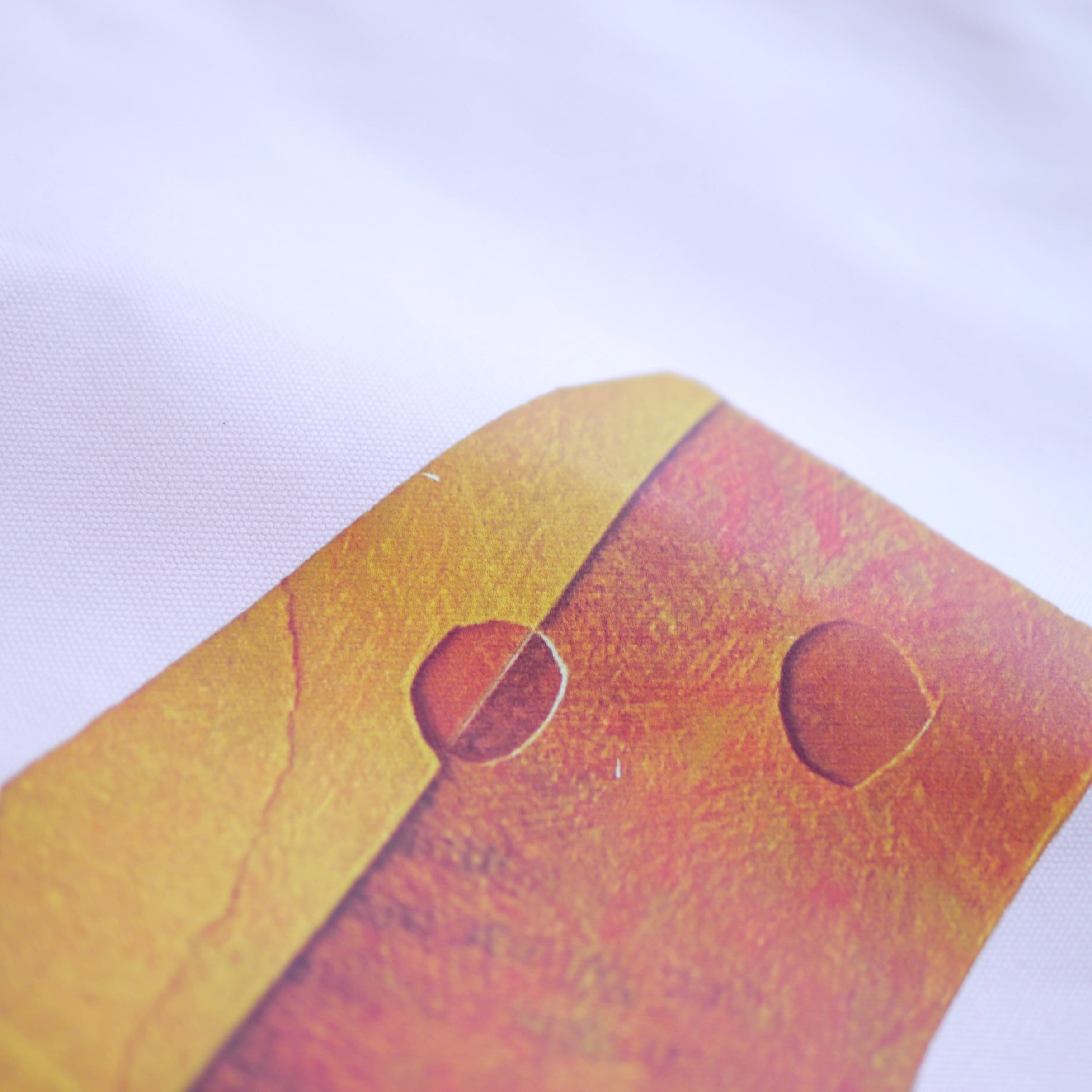 とびだす絵本「たべるのだあれ?」に登場する、たべもの(チーズ)を大きくプリントしたBIGトートバッグ。