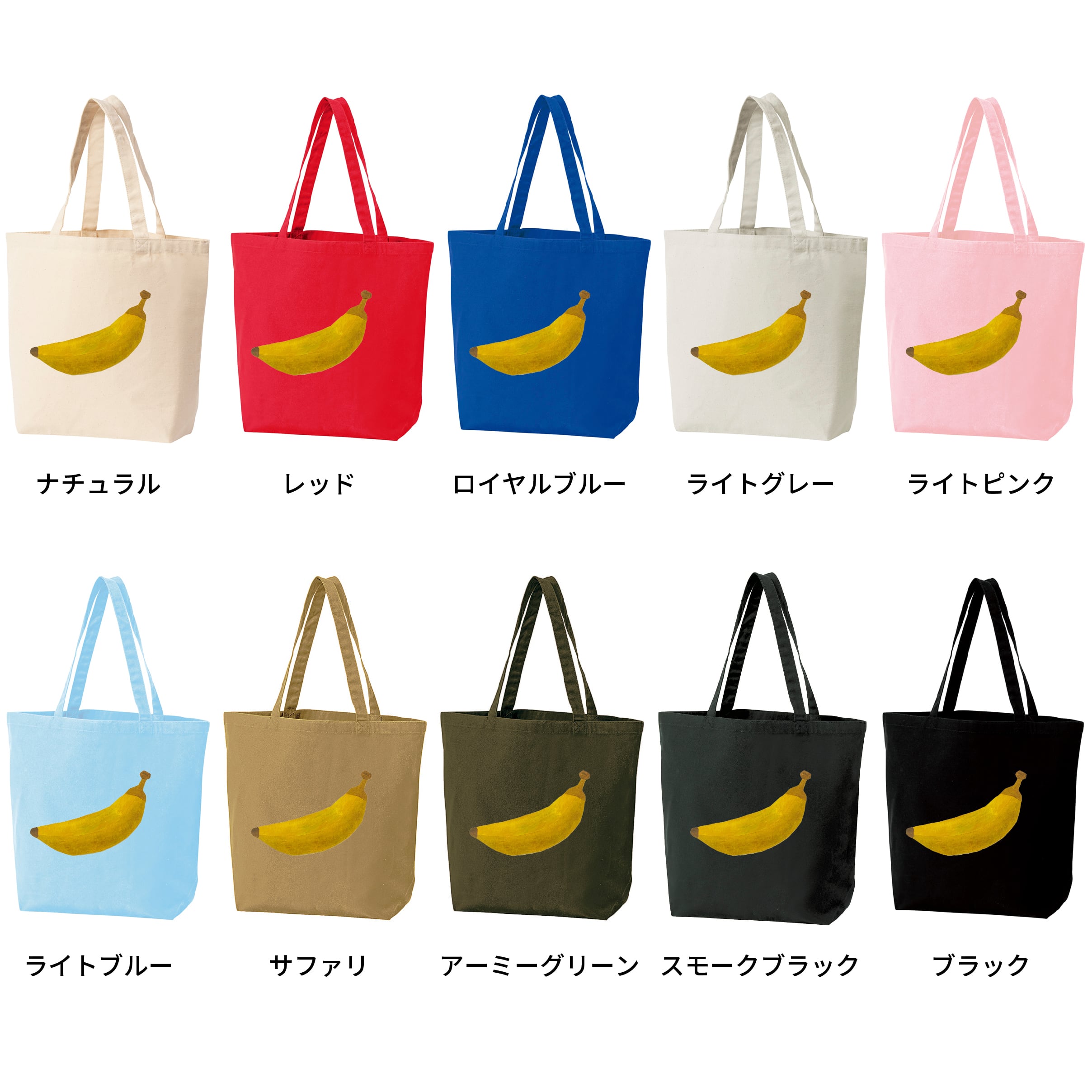とびだす絵本「たべるのだあれ?」に登場する、たべもの(バナナ)を大きくプリントしたBIGトートバッグ。